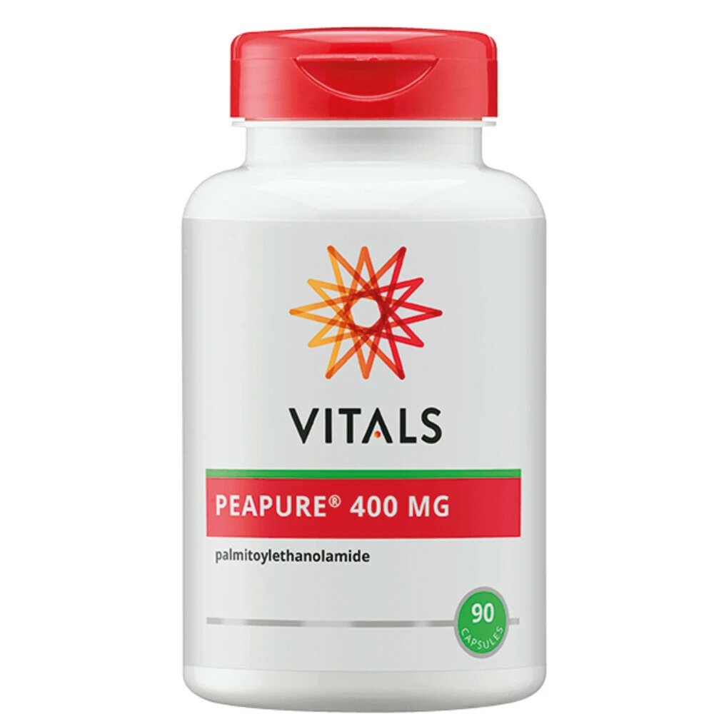 Zuivere palmitoylethanolamideVitals PeaPure bevat 400 mg zuivere palmitoylethanolamide (met de merknaam PeaPure®) per vegetarische capsule, zonder onnodige toevoegingenZuivere palmitoylethanolamide, zonder hulpstoffenEen natuurlijke, lichaamseigen stofHoog gedoseerd; 400 mg per capsuleGeproduceerd volgens een uniek en gepatenteerd productieprocesDraagt het PEA-opt®-keurmerk als garantie voor optimale opneembaarheid en werkzaamheidVegetarische capsulePalmitoylethanolamide (PEA, spreek uit